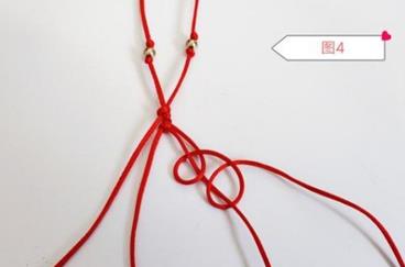 第四步,下面要用加的两根线来编雀头结,如图4所示。
